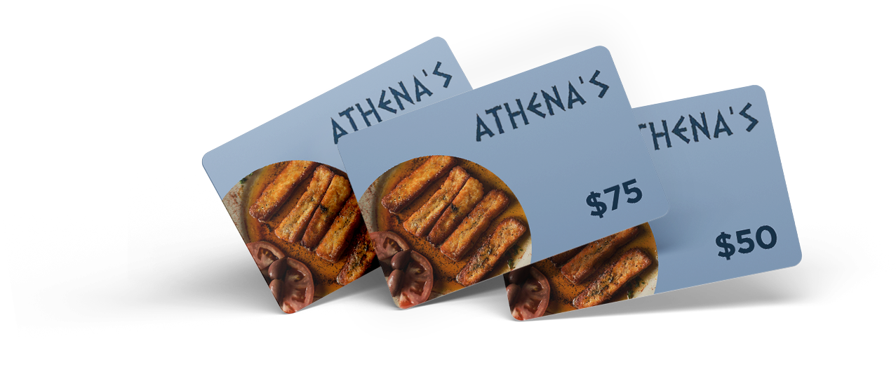 Share the flavors of Athena's Greek & Lebanese Grill with our gift cards. Treat your loved ones to a memorable meal—right at their fingertips. Order yours today and enjoy!